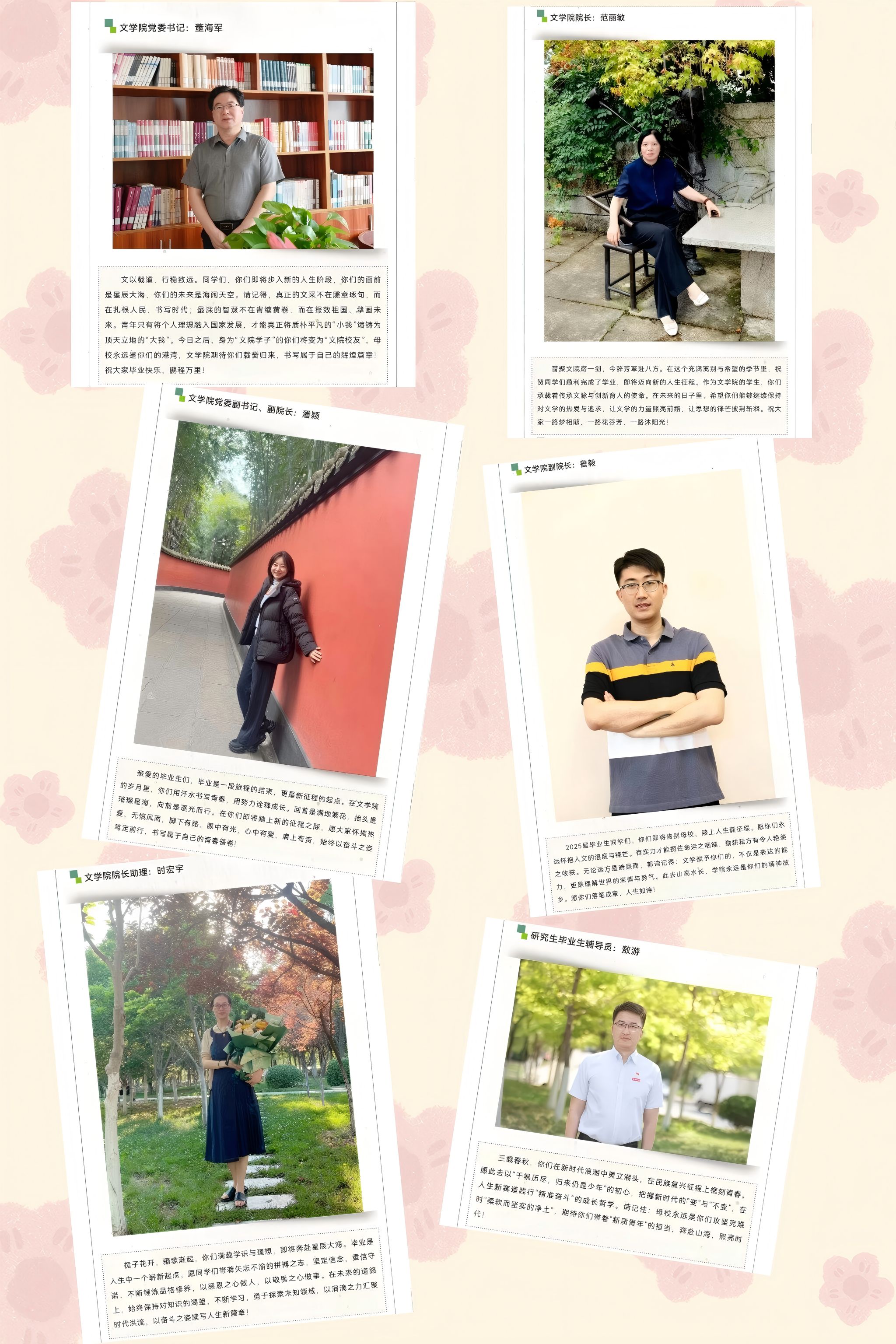 ok138cn太阳集团529的毕业生学子们即将踏上新的征程,学院领导、毕业生辅导员、毕业班班主任以及学弟学妹们纷纷通过文字为他们送上温暖的寄语,表达祝福和期待。“青年只有将个人理想融入国家发展,才能真正将质朴平凡的‘小我’熔铸为顶天立地的‘大我’作为ok138cn太阳集团529的学生,你们承载着传承文脉与创新育人的使命,希望你们能够继续保持对文学的热爱与追求,让文学的力量照亮前路”“学海无涯,毕业非终,亲爱的学长学姐,愿你扬帆起航,破浪前行,前路漫漫,星辰大海,皆为你征途”一句句温情寄语,表达了对毕业生们的殷切期许和深情叮嘱,激励他们在未来的岁月中不断追求卓越,创造属于自己的精彩人生。