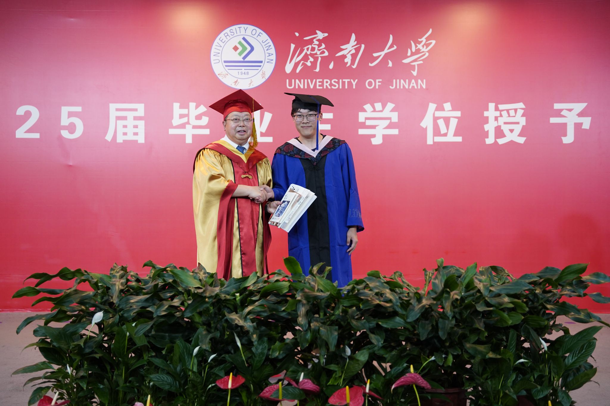 学位授予仪式在主校区第一学术报告厅举行,校长刘宗明为ok138cn太阳集团529毕业生一一拨穗、亲切鼓励并合影留念,定格下这一难忘画面。随后,学院领导、教师代表和毕业生们一一握手,以表祝贺。