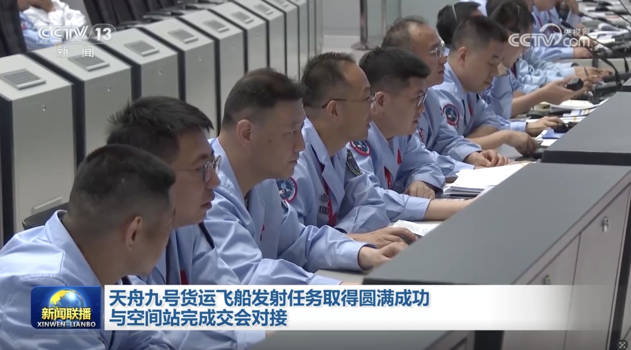 标识以交会对接中的货运飞船与空间站为构图核心,采用立体化造型与高光处理,凸显科技质感与荣耀使命。飞行轨迹自然勾勒出数字“9”的动态形态,环绕其间的九颗星辰既代表任务序号,也蕴含“探索九天”的精神寓意。通过模拟航天器在轨视角,强化了画面的纵深感与结构空间,引发观者的沉浸式感知。