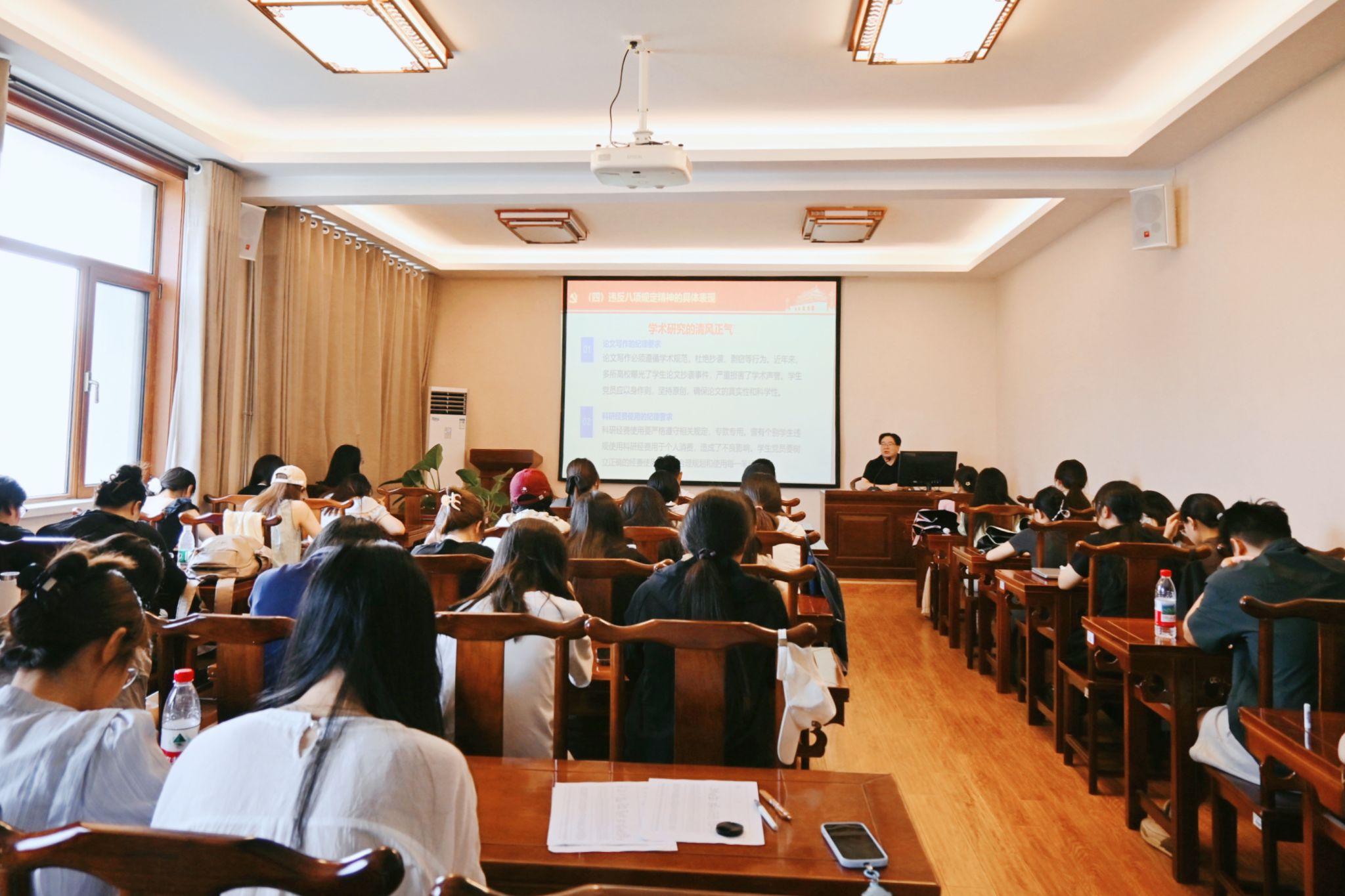 为深入贯彻中央八项规定精神学习教育,进一步深化研究生党员和入党积极分子对中央八项规定精神的理解与践行,6月24日,ok138cn太阳集团529党委书记董海军在学院舜耕书院为全体研究生党员及入党积极分子讲授深入贯彻中央八项规定精神专题党课。