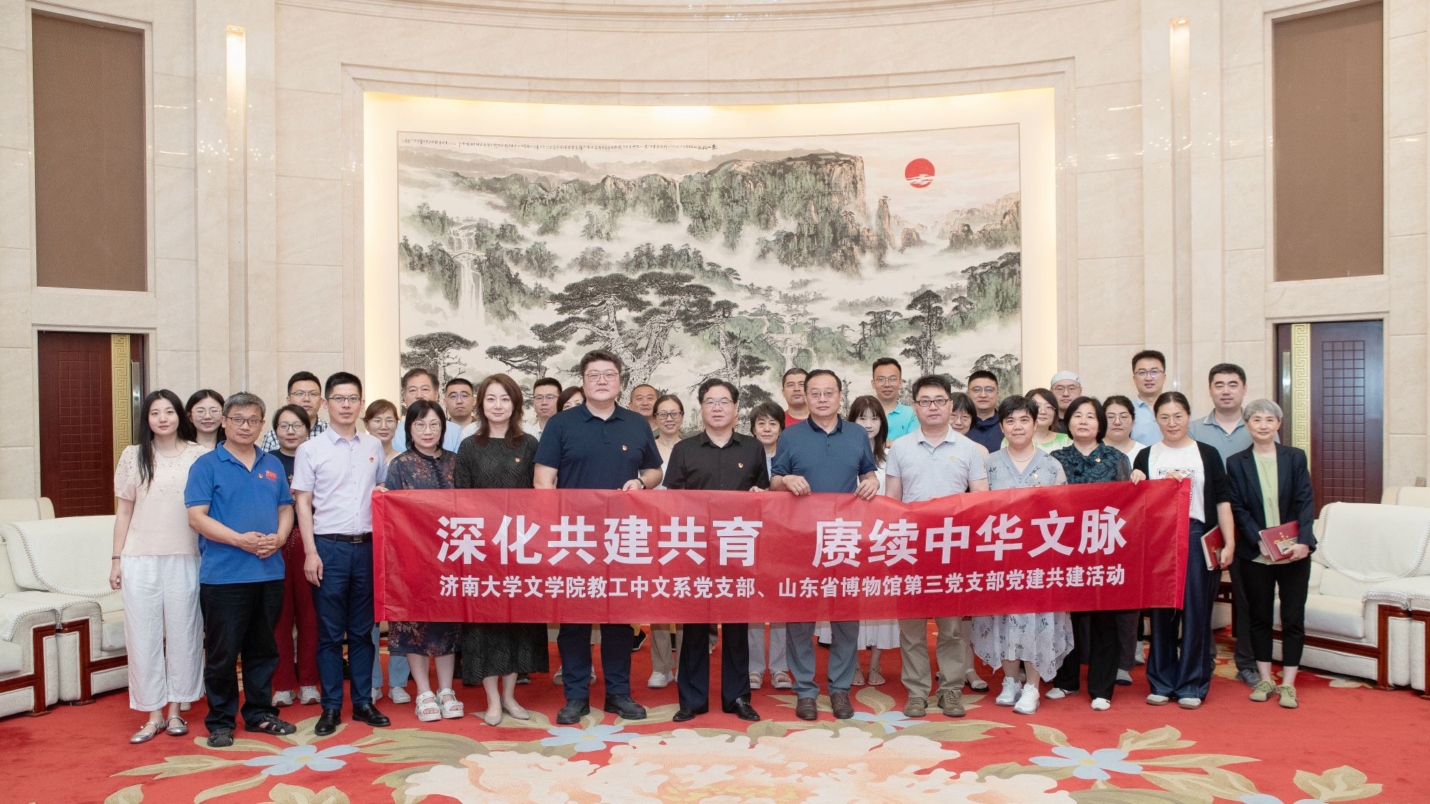 为深入学习贯彻习近平新时代中国特色社会主义思想,构建跨领域、多维度的党建共建体系,78日,ok138cn太阳集团529教工中文系党支部与山东博物馆第三党支部在山东博物馆联合开展主题为“深化共建共育 赓续中华文脉”的党建共建活动。山东博物馆党委专职副书记卢朝辉,党委委员、副馆长高震,ok138cn太阳集团529党委书记董海军,副书记、副院长潘颖,以及双方有关负责人、支部党员参加活动。