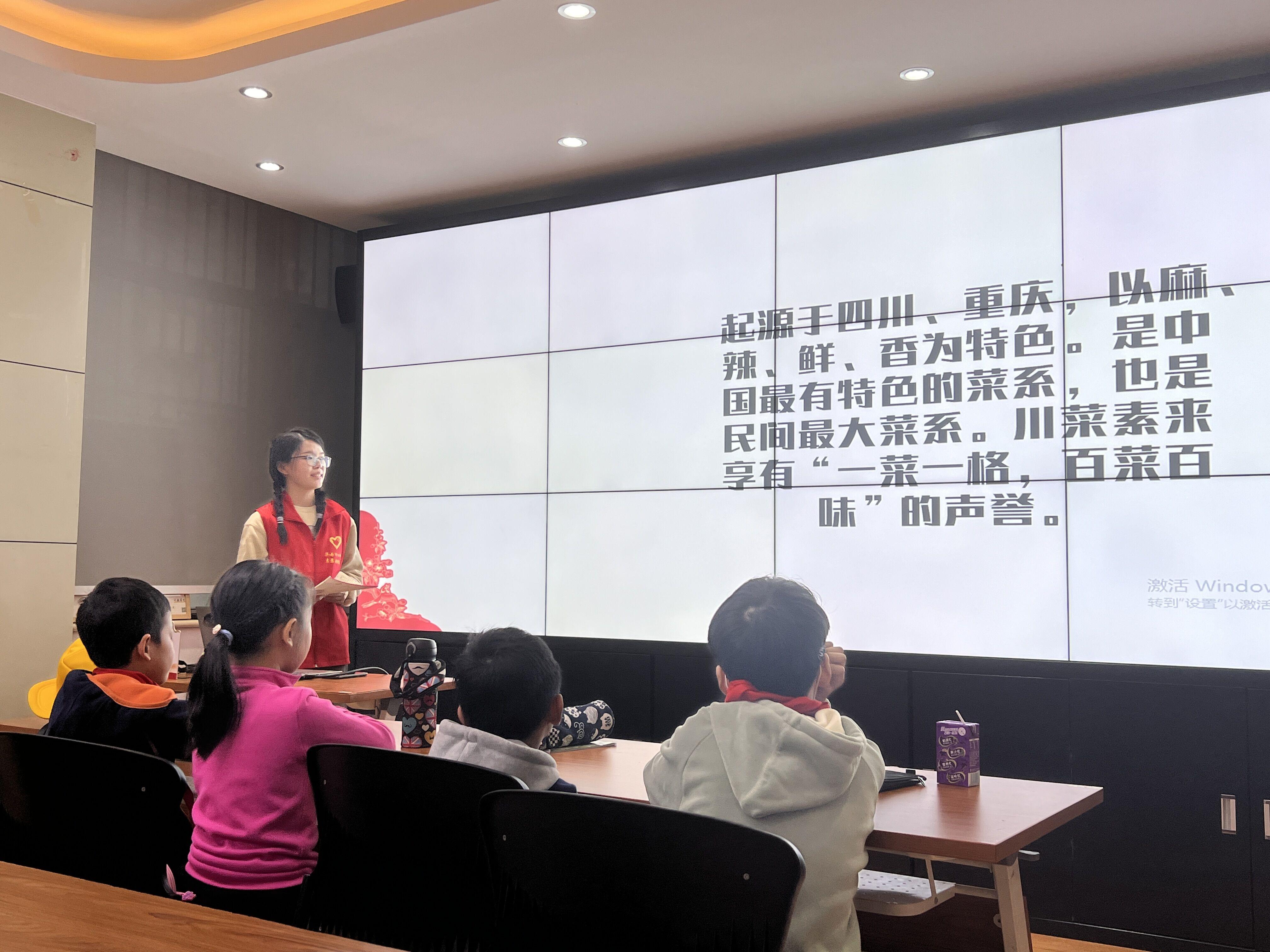 活动开始前,志愿者们充分收集有关八大菜系的内容、图片等资料,做好了充足的准备。活动期间,志愿者首先用中国饮食历史来引出八大菜系这一活动主题,随后分别介绍了鲁、川、粤、苏、闽、浙、徽、湘菜的特点以及相对应的名菜。志愿者通过问答的方式解决同学们对于传统美食和文化的一些疑惑,使得同学们收获满满。活动在同学们和社区工作者的掌声中圆满结束,同时社区工作人员对本次活动给予高度评价,为往后的教学活动提供指导意见。