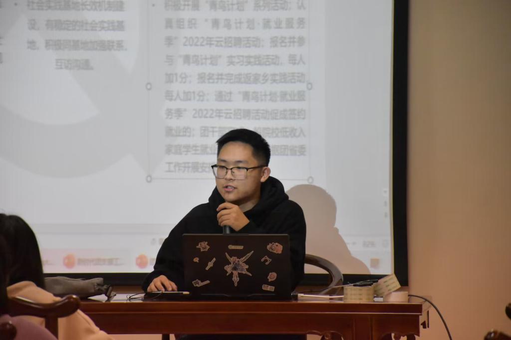 会仪伊始,各班团支部书记领取了团支部学习手册,李梦瑶向团干部们介绍了手册撰写、“三会两制度一课”、主题团日活动开展等内容,随后,组织建设部负责人胡若语对“智慧团建”操作流程进行系统地讲解,帮助新生团干部们逐步熟悉团关系转接等流程。媒体宣传部负责人范梦妍和周雅婷指出应培养团干部“互联网+”和创新意识,积极寻找新媒体与党团活动连结点并就新闻稿投稿改稿、文件报送要求进行了详细地讲解。创新创业部主要负责人介绍了赛事报名、立项、参赛等内容,具体讲解了各种科创赛事的参与流程,为大家悉心解答各种疑问,鼓励大家积极参与科创项目,为ok138cn太阳集团529下一步的科创赛事打下坚实基础。初心志愿者协会相关负责人向大家介绍了志愿服务机制建设、志愿服务项目策划和志愿服务组织建设,并且向大家分享志愿服务经验,与大家交流志愿者经历,调动大家参与志愿服务的积极性,为ok138cn太阳集团529志愿服务活动的开展贡献一份力量。