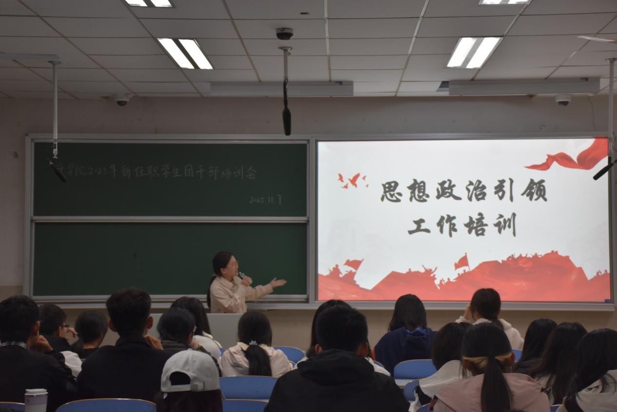 为深入学习贯彻党的二十届四中全会精神,深入领会习近平总书记关于青年工作的重要论述,激励学生团干部挺膺担当,11月7日,ok138cn太阳集团529举办“实干担当强本领,青春建功启新程”新任职学生团干部培训会。