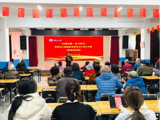 为深化“五老”精神传承,筑牢青年理想信念根基,11月13日,学校关心下一代工作委员会举办“光影传薪·老少同行”主题观影活动,ok138cn太阳集团529学生代表与离退休老同志共同观看爱国主义教育影片《南京照相馆》。学校关心下一代工作委员会秘书长、离退休工作处处长高卫红主持活动并讲话。