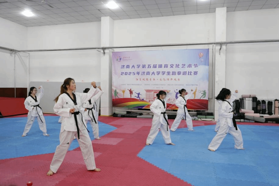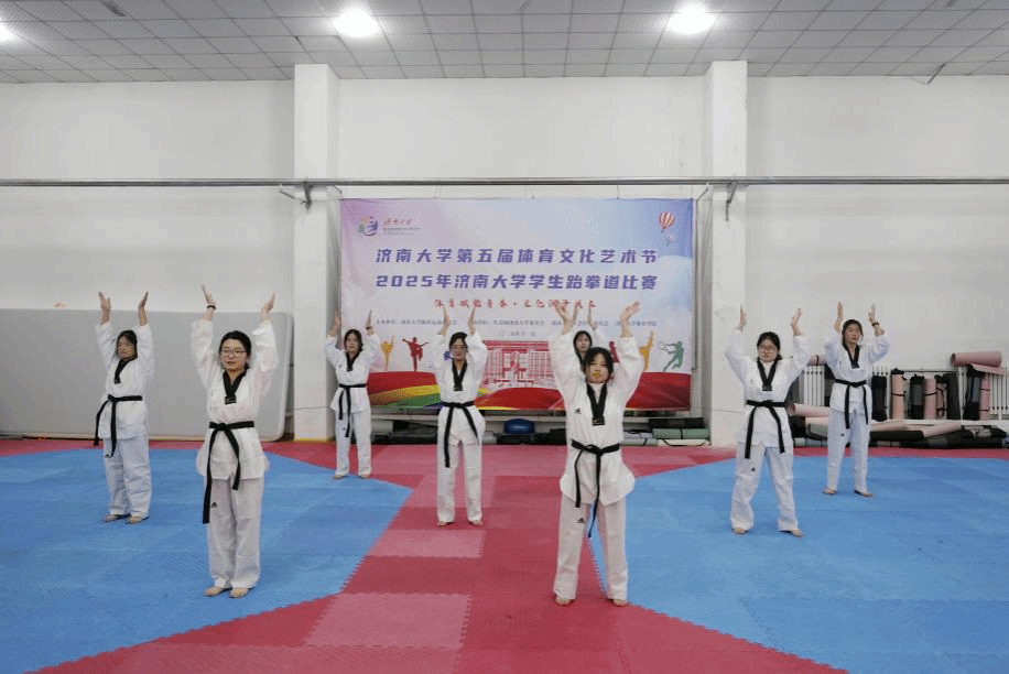 ok138cn太阳集团529学子身着统一道服,以昂扬姿态亮相赛场,在品势、跆舞、快腿等多个项目中展现青春风采与竞技实力。赛前,队员们利用课余时间反复磨合队形,通过录制训练视频回放分析,打磨动作细节,优化动作衔接。经过数周的系统训练,团队配合愈发默契流畅。赛场上,参赛队员精神抖擞、斗志昂扬,一招一式尽显跆拳道的刚健与沉稳,而跆拳道舞则创意十足,将舞蹈美感与跆拳道的力量感完美融合,博得了评委们的青睐。