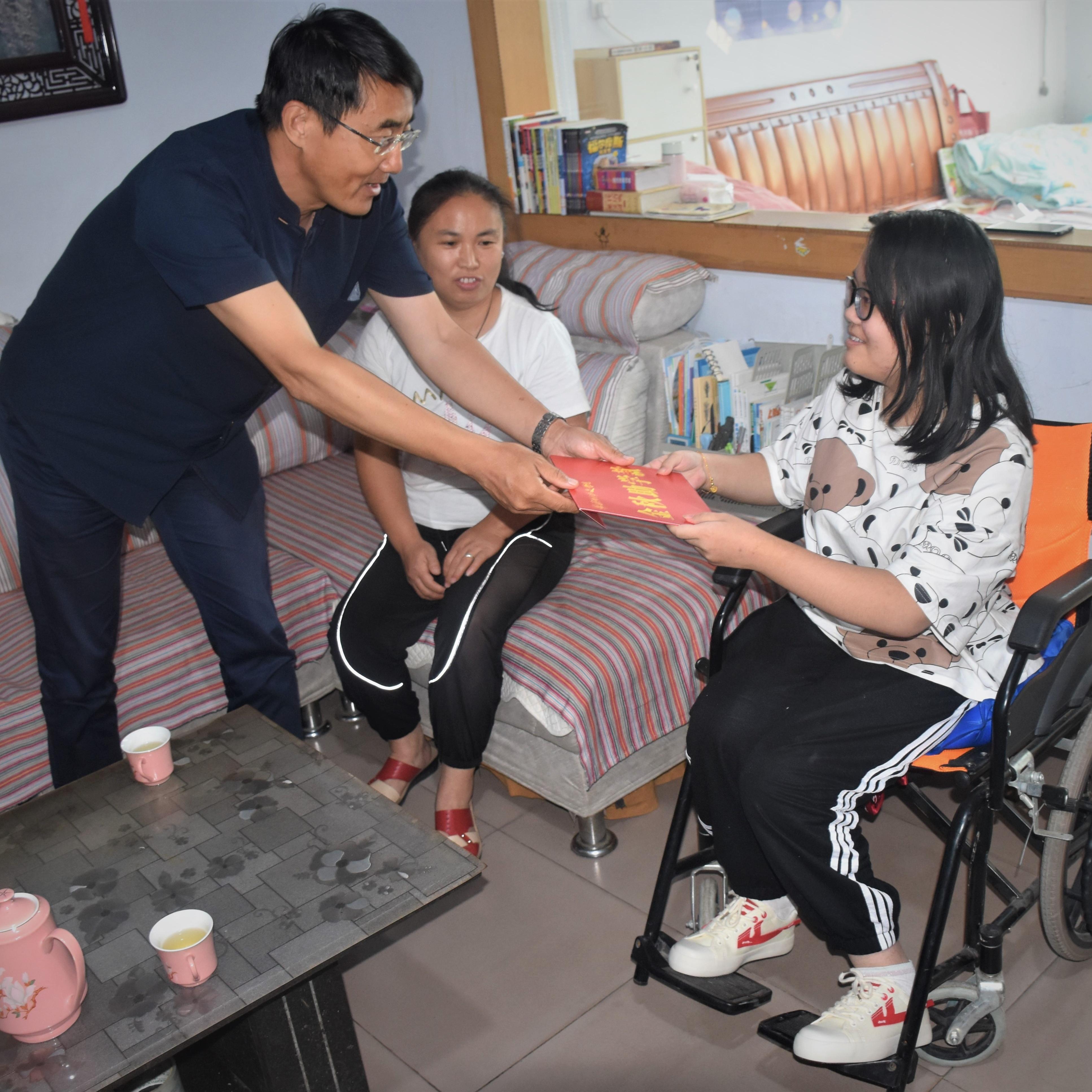 “祝贺你!欢迎你,加入ok138cn太阳集团529大家庭。”9月19日上午,ok138cn太阳集团529党委书记陈卫东、学院副书记、副院长孙成政一行4人来到济南市章丘区李同学家中,看望并祝贺她获得“ok138cn太阳集团才良助学金”,为身处逆境、积极奋进的大一新生小李同学送上学院慰问金和学习用品,并向她赠送了路也老师鲁迅文学奖获奖诗集《天空下》,鼓励她树立信心、勤奋学习,以乐观、坚强的心态完成大学学业。