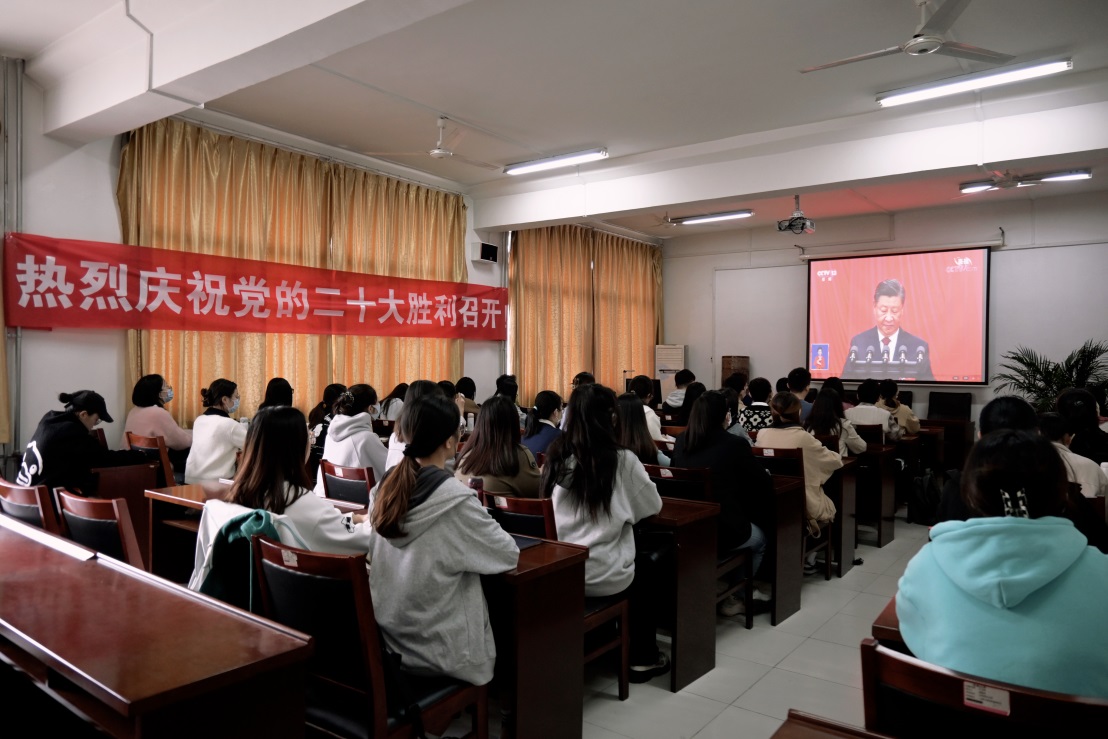 中国共产党第二十次全国代表大会,是在全党全国各族人民迈上全面建设社会主义现代化国家新征程、向第二个百年奋斗目标进军的关键时刻召开的一次十分重要的大会。党的二十大的召开就是要继承和发扬我们党的光荣传统,总结过去,把握现在,展望未来,为实现下一阶段的目标奠定坚实基础。在观看直播现场,我院党员干部和广大师生边看边做好记录,不时以热烈的掌声回应大会精彩报告。