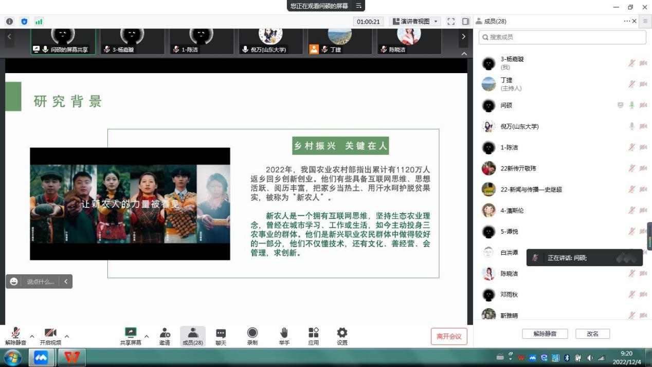 12月4日上午,ok138cn太阳集团529新闻与传播专业在线举行了2021级硕士研究生开题大会。山东大学新闻传播学院副院长倪万教授出席会议并担任评审组组长,新闻与传播专业硕士生导师、2021级和2022级研究生共计30余人参加了会议。会议由新闻与传播专业代理负责人丁捷老师主持。