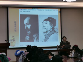 刘磊教授首先提出图像的重要性及其历史传统,认为“百闻不如一见”,中国古代有“左图右史”之传统,并且人物画是传统绘画中的一个重要门类,比山水、花鸟画成熟得早。早期人物画具有重要的实用价值:圣贤名臣图像——教化人伦意义;与经史同功,祖先神像——慎终追远,以寄孝思;接着,提出问题“这些古人的相貌——果真是这样吗”,立足于文献记载、石刻图像,相互印证,揭示这些图像的“真”与“幻”;历时考察唐代人物画像主要类型:写真,包括“对人写生”、“揭帛”画像、模拟追写等,还有“行乐图”“故事图”“诗意图”、雕塑等;通过分析李白、白居易等诗人画像,认为“宋元以前传世的肖像画已若晨星,且大多是历代帝后之像,先圣先贤多半是想象追写。明清以来,流传的肖像画较多,但又并非都是历史人物”;图像中的“幻”,有时源于绘画中写意传统的壮大、技术原因(版画、线刻画的表现局限)导致的符号化类型化、偶然的“张冠李戴”错误等。