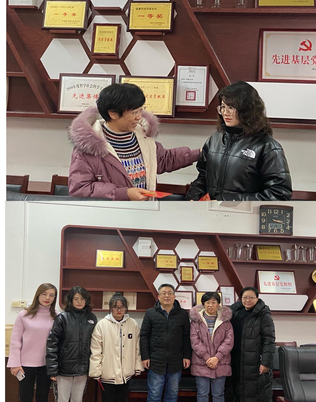 2020年12月28日,学校党委统战部李蘋、ok138cn太阳集团台属联谊会会长马欲晓来到ok138cn太阳集团529走访慰问了新生少数民族学生代表,藏族学生益西曲珍和维吾尔族学生孜尼沙汗·牙森。学院党委副书记朱红岩和新生辅导员赵丽丽老师参与了慰问活动。