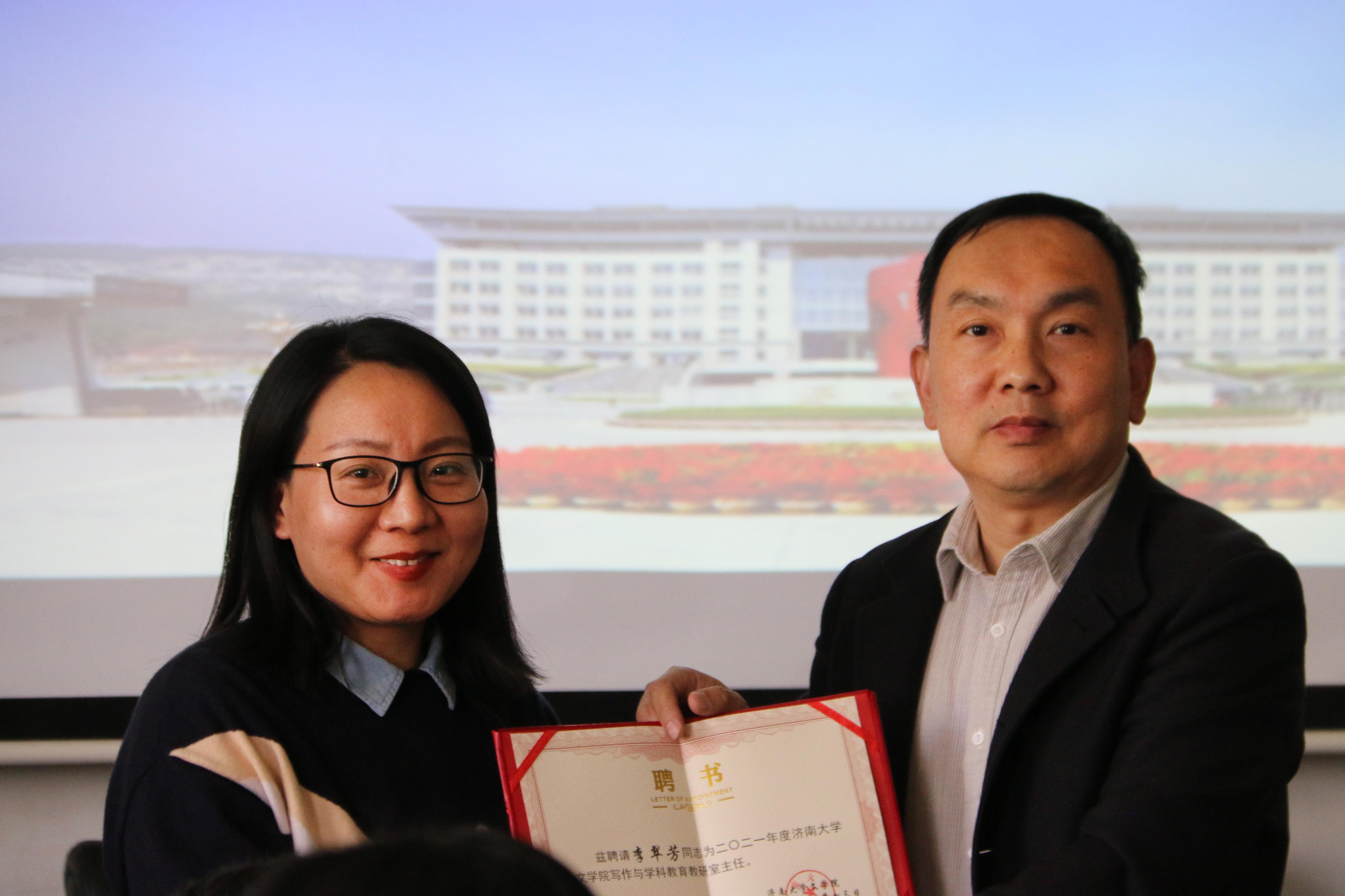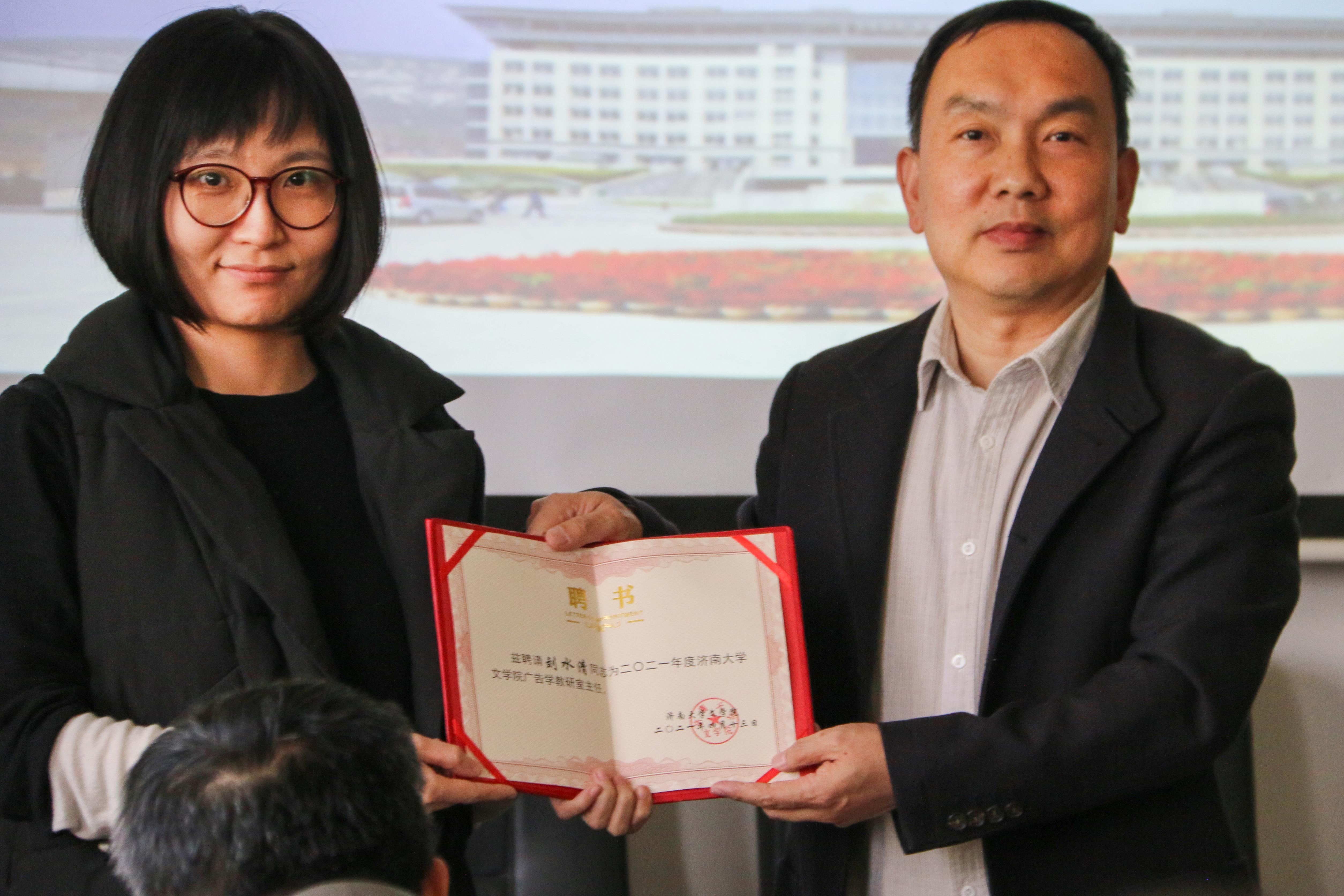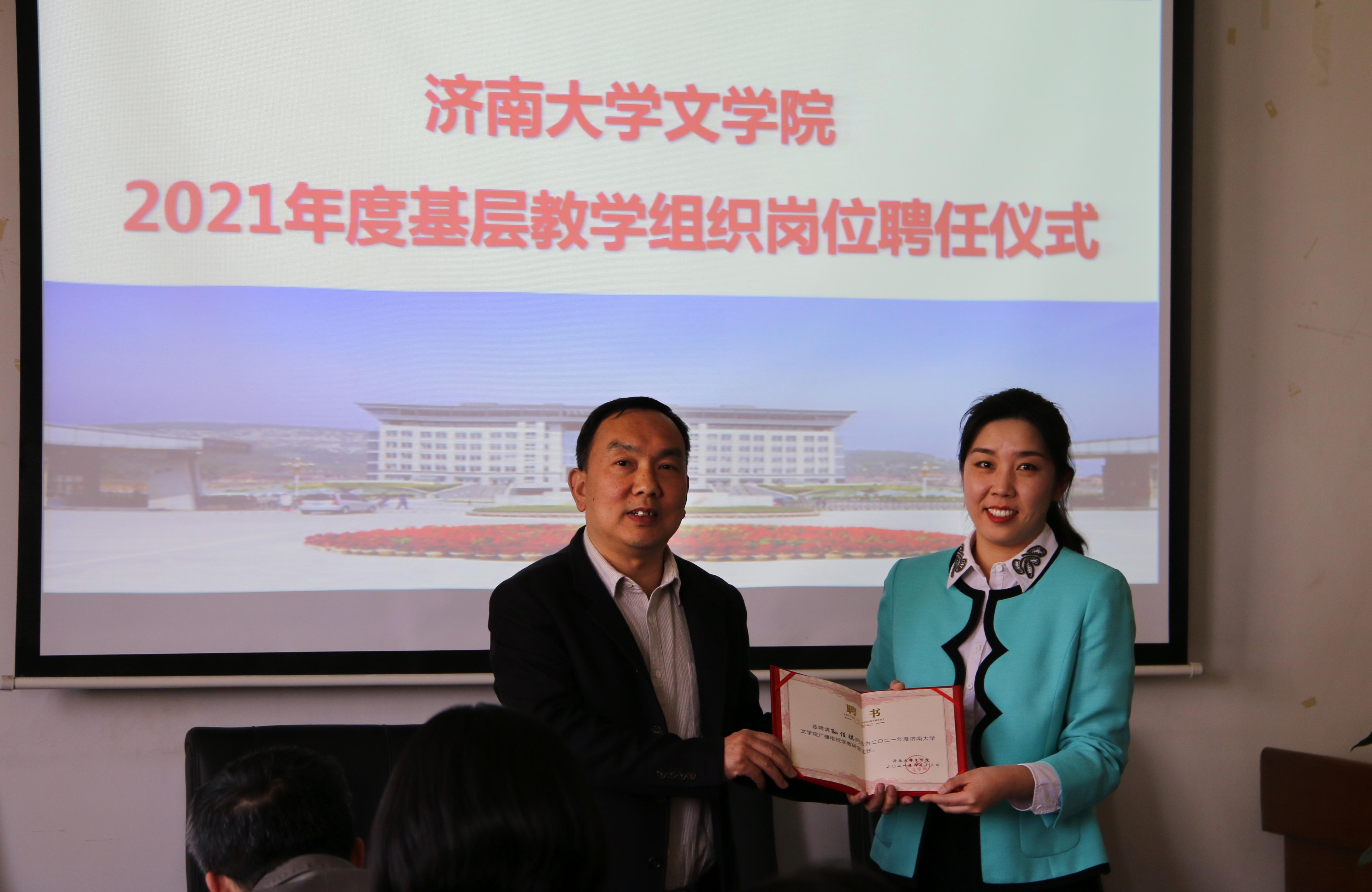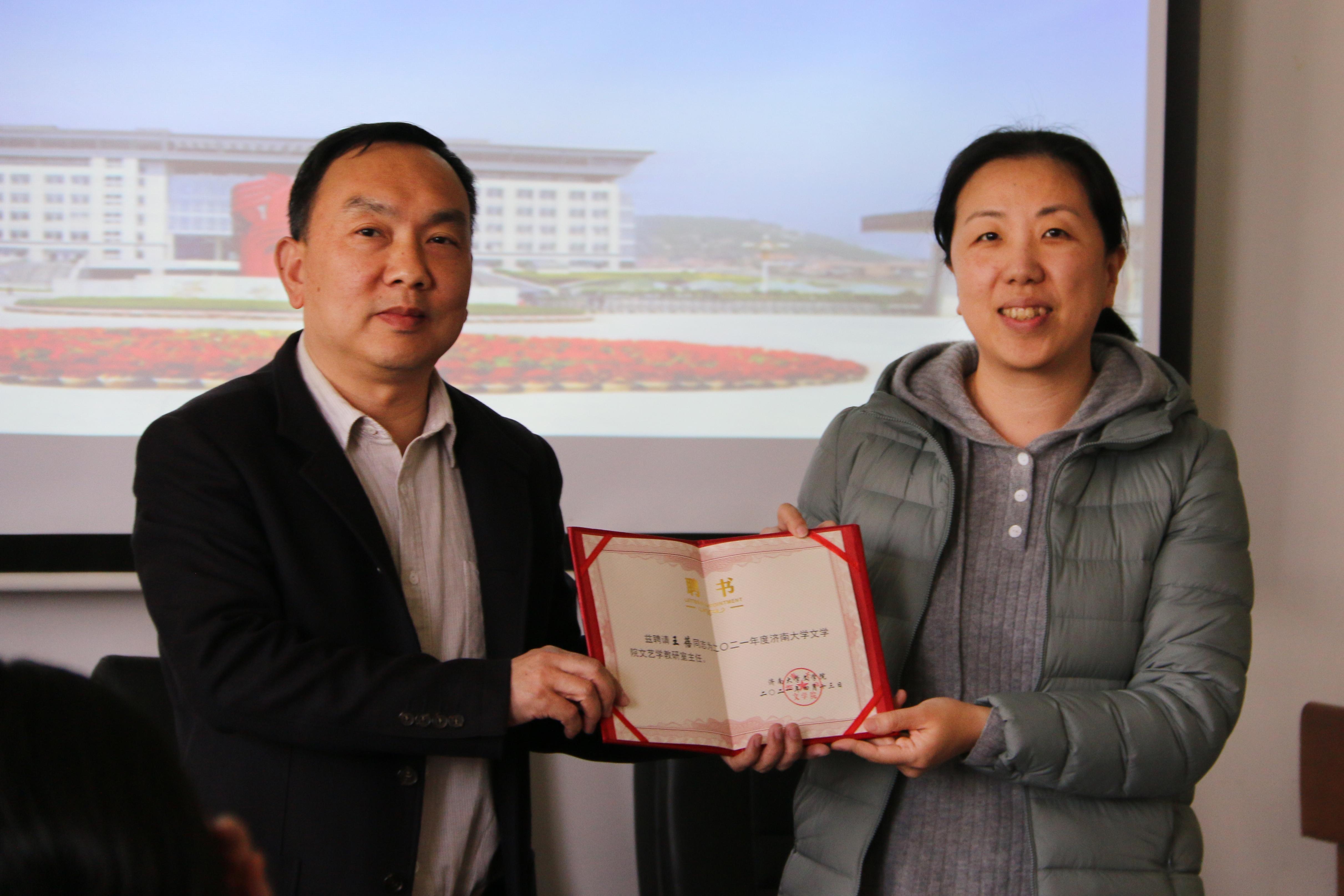 随后,学院基层教学组织负责人聘任仪式在ok138cn太阳集团529会议室正式举行。首先,张兵院长向全体教师宣读了《ok138cn太阳集团529基层教学组织负责人聘任决定》,决定聘任王蓓等10人担任学院教研室主任、聘任蒋莹担任汉语言文学专业实践教学负责人,同时决定推荐张小平等4人分别担任汉语国际教育、广播电视学、广告学、编辑出版学专业负责人。随后,陈卫东书记、张兵院长分别向新聘任的教师颁发了聘书,并合影留念。至此,聘任仪式圆满结束。
