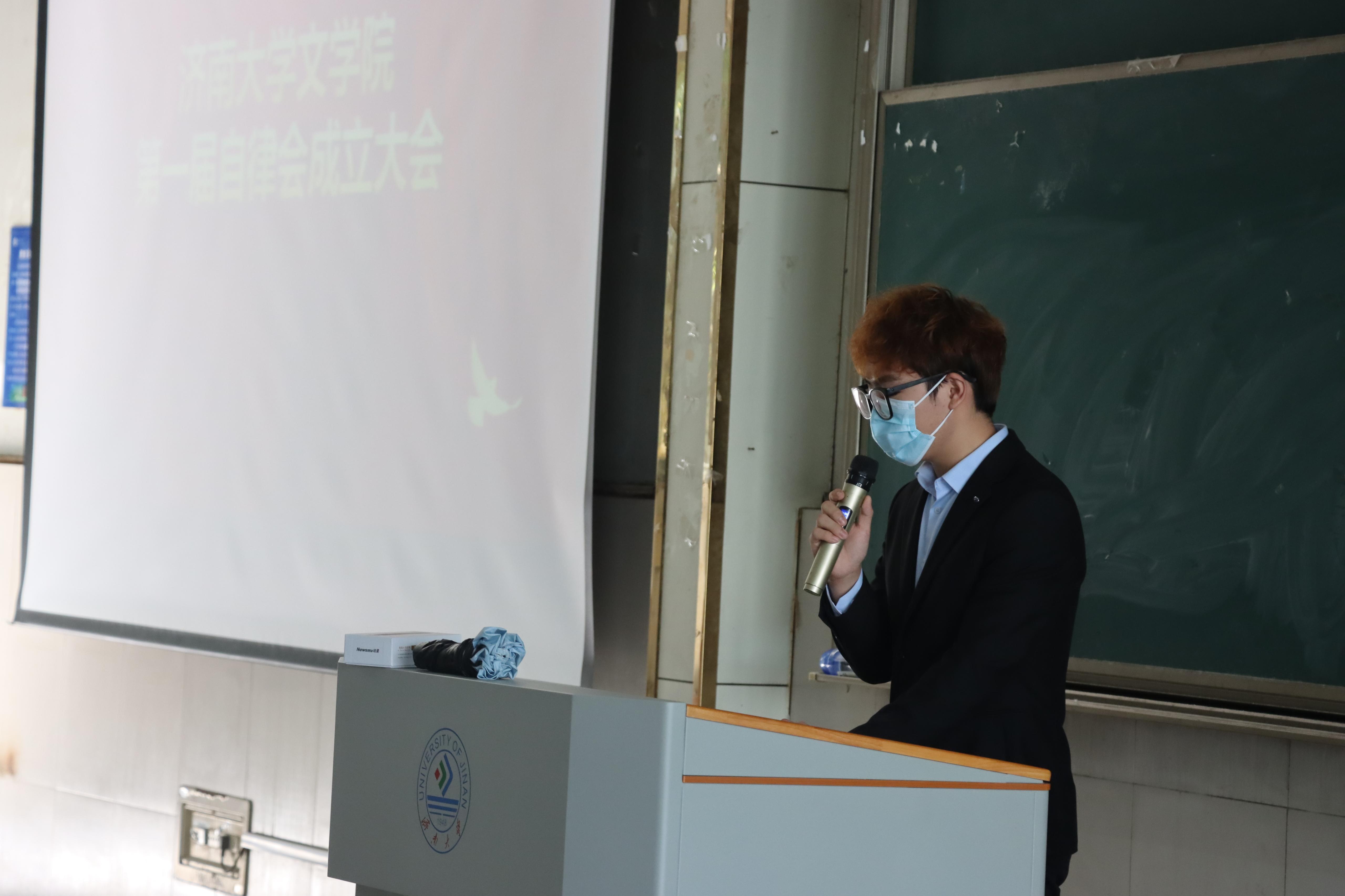 自律会指导教师敖游代表学院向全体参会人员宣布新一届自律会成立并简要介绍了各部门的工作职责。随后,自律会主要负责人顾宏伟代表自律会全体成员向学院做出承诺与表态,会在新形势下积极贯彻学校及学院党委的要求,严肃学风学纪,筑牢安全底线。朱红岩副书记对ok138cn太阳集团529第一届自律会的成立表示祝贺,他说,自律会作为学院学生管理工作的重要组成部分,起着连接校院、联系师生的桥梁纽带的重要作用,自律会成员要以身作则,严以律己,引导广大学生发挥自我教育、自我管理、自我服务的主体作用,做到自律和它律相结合、自我管理和组织管理相结合,自律会成员在工作中眼睛要明、耳朵要灵、腿脚要勤,行为要正、措施要严,奖惩要到位。