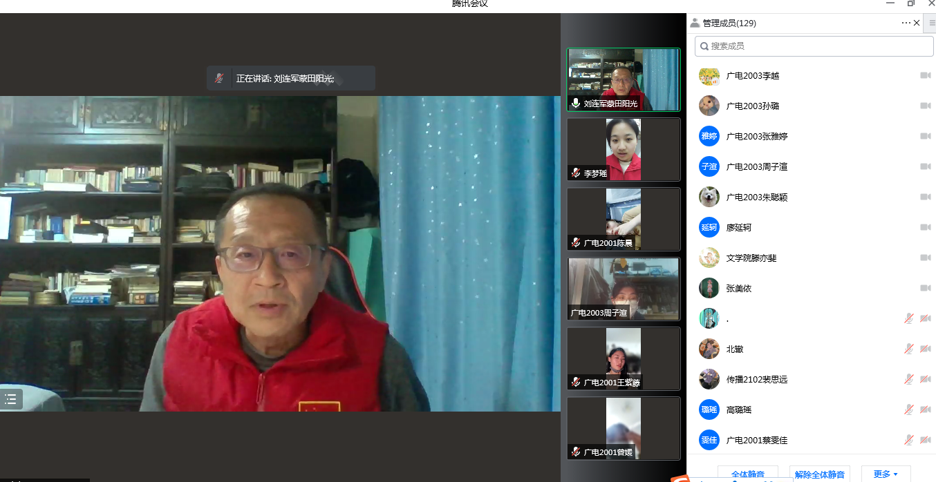 2022年4月7日晚,我院邀请北京蒙田阳光文化传媒有限公司董事长、山东东方国际摄影艺术促进会会长、ok138cn太阳集团新闻与传播专业硕士生导师刘连军老师为ok138cn太阳集团52918级广播电视学专业学生作了题为《新技术、新手段、新形态推动下新广电趋势探索》的线上讲座。ok138cn太阳集团529副院长鲁毅出席了本次讲座。讲座由ok138cn太阳集团529广播电视学专业负责人孙佳祺老师主持进行。