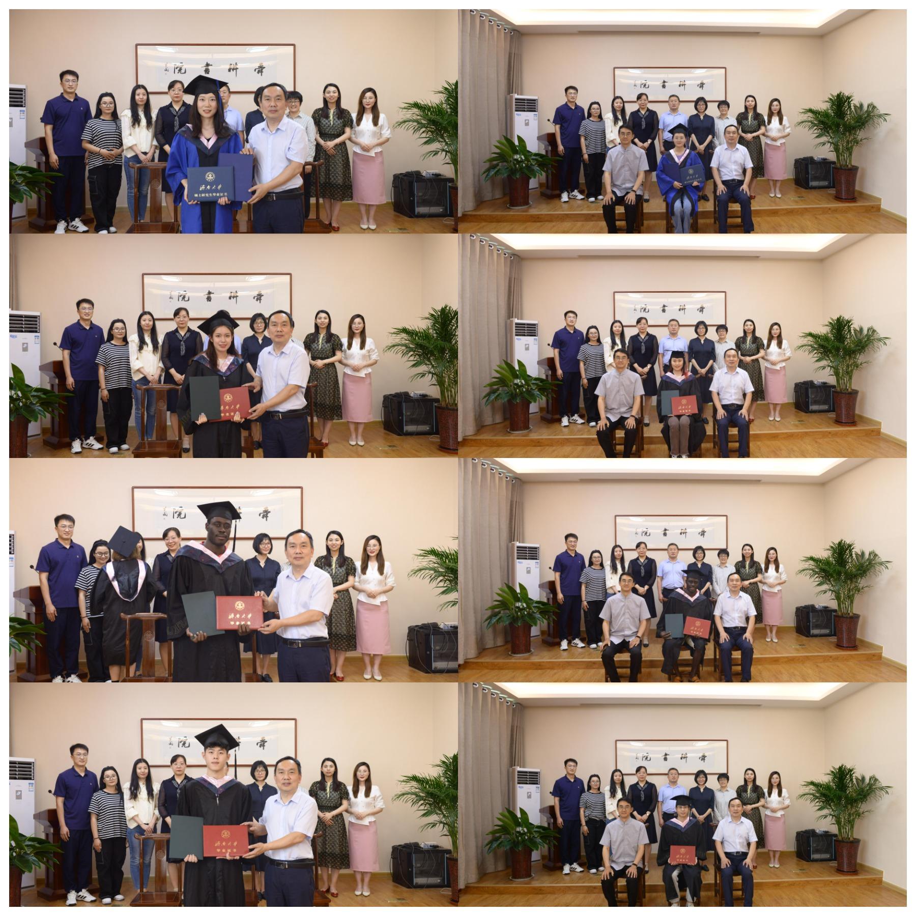 随后,院长张兵亲自为学生代表并颁发毕业证书和学位证书,学院老师与同学们一一合影留念。