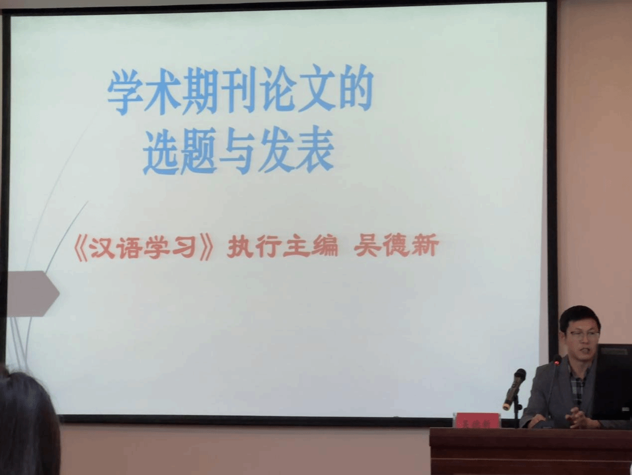 10月19日下午,《汉语学习》执行主编、延边大学ok138cn太阳集团529吴德新教授应邀莅临ok138cn太阳集团529舜耕书院,作了题为《学术期刊论文的选题与发表》的学术讲座。ok138cn太阳集团529相关专业师生百余人参加讲座并积极互动交流。讲座由院长助理王恩旭教授主持。