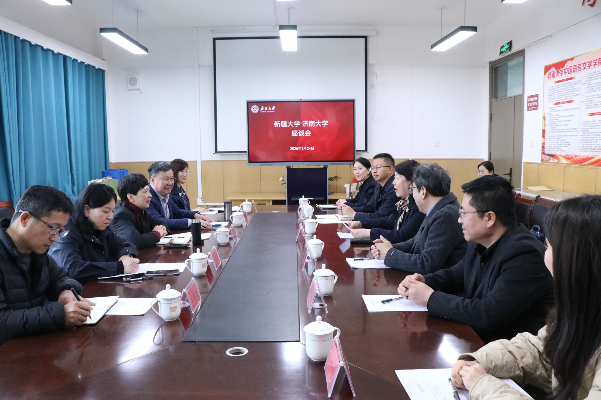 3月24日上午,商华一行来到新疆大学调研交流。在新疆大学中国语言文学学院院长葛刚岩的陪同下,商华一行参观了新疆大学校史馆,了解学校的历史沿革与发展历程。随后,双方举行座谈交流,新疆大学党委副书记孟凡丽、中国语言文学学院院长葛刚岩及相关负责同志出席。孟凡丽对商华一行的到访表示热烈欢迎,并介绍了新疆大学的发展定位、历史使命及新文科建设情况。她表示,学校坚持“建强工科、优化理科、繁荣文科、促进交叉”的发展思路,不断优化学科结构,提升综合办学实力。葛刚岩及相关负责同志分别围绕中文学科建设、人才培养、科研转型、国家语言文字推广基地建设等方面作交流分享。